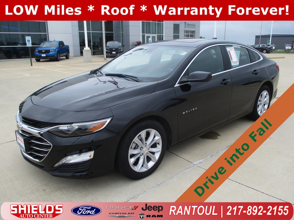 Win a deal on this 2024 Chevrolet Malibu LT before it's too late. Comfortable yet agile, its tried-and-true Automatic transmission and its strong Turbocharged Gas I4 1.5L/ engine have lots of zip for a budget-friendly price. It is well equipped with the following options: 1LT PREFERRED EQUIPMENT GROUP includes standard equipment, WHEELS, 17" (43.2 CM) ALUMINUM, TRANSMISSION, CONTINUOUSLY VARIABLE (CVT), TIRES, P225/55R17 ALL-SEASON, BLACKWALL, SUNROOF, POWER, TILT-SLIDING with additional skylight fixed glass aft of the sliding glass and sunshade, SEATS, FRONT BUCKET, MOSAIC BLACK METALLIC, LICENSE PLATE BRACKET, FRONT, JET BLACK, PREMIUM CLOTH SEAT TRIM, and ENGINE, 1.5L TURBO DOHC 4-CYLINDER DI with Variable Valve Timing (VVT) (163 hp [122 kW] @ 5700 rpm, 184 lb-ft torque [248.4 N-m] @ 2500-3000 rpm). You've done your research, so stop by Shields Auto Center at 850 Broadmeadow Rd, Rantoul, IL 61866 this weekend to get a deal that no one can beat!