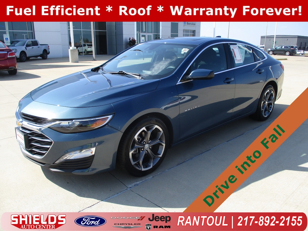 Sturdy and dependable, this Used 2024 Chevrolet Malibu LT packs in your passengers and their bags with room to spare. This Chevrolet Malibu features the following options: 1LT PREFERRED EQUIPMENT GROUP includes standard equipment, WHEELS, 18" (45.7 CM) BRIGHT MACHINED ALUMINUM with Lunar Gray pockets, TRANSMISSION, CONTINUOUSLY VARIABLE (CVT) (STD), TIRES, 245/45R18 ALL-SEASON, BLACKWALL, SUNROOF, POWER, TILT-SLIDING with additional skylight fixed glass aft of the sliding glass and sunshade, SEATS, FRONT BUCKET, LICENSE PLATE BRACKET, FRONT, LAKESHORE BLUE METALLIC, JET BLACK, PREMIUM CLOTH SEAT TRIM, and ENGINE, 1.5L TURBO DOHC 4-CYLINDER DI with Variable Valve Timing (VVT) (163 hp [122 kW] @ 5700 rpm, 184 lb-ft torque [248.4 N-m] @ 2500-3000 rpm). Carry all your passengers in comfort and style in this trustworthy and dependable Chevrolet Malibu. Treat yourself - stop by Shields Auto Center located at 850 Broadmeadow Rd, Rantoul, IL 61866 to make this car yours today! No haggle, no hassle.