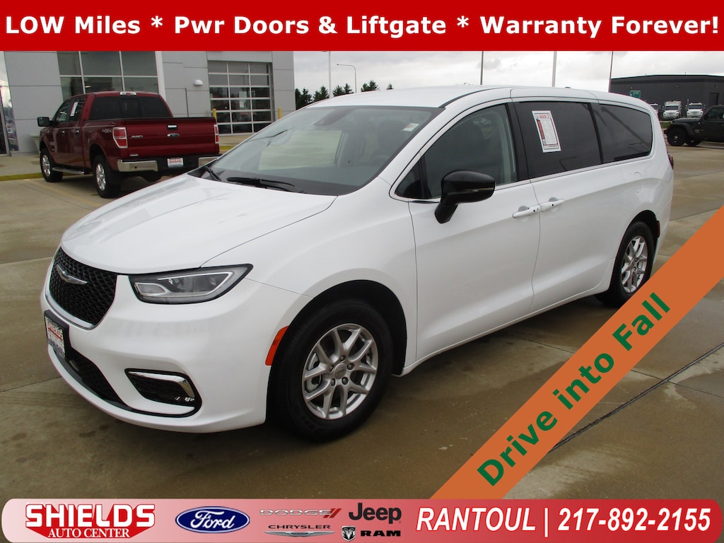 Safe and reliable, this Used 2024 Chrysler Pacifica Touring L lets you cart everyone and everything you need in one vehicle. This Chrysler Pacifica has the following options: Power Liftgate Rear Cargo Access, Power Door Locks w/Autolock Feature, Front Fog Lamps, Deep Tinted Glass, Cruise Control w/Steering Wheel Controls, ABS And Driveline Traction Control, WHEELS: 17" X 7.0" ALUMINUM, TRANSMISSION: 9-SPEED 948TE AUTOMATIC, TIRES: 235/65R17 BSW AS), and QUICK ORDER PACKAGE 27L -inc: Engine: 3.6L V6 24V VVT UPG I w/ESS, Transmission: 9-Speed 948TE Automatic. Pilot the whole group in luxurious comfort in this trustworthy and dependable Chrysler Pacifica. For a hassle-free deal on this must-own Chrysler Pacifica come see us at Shields Auto Center, 850 Broadmeadow Rd, Rantoul, IL 61866. Just minutes away!