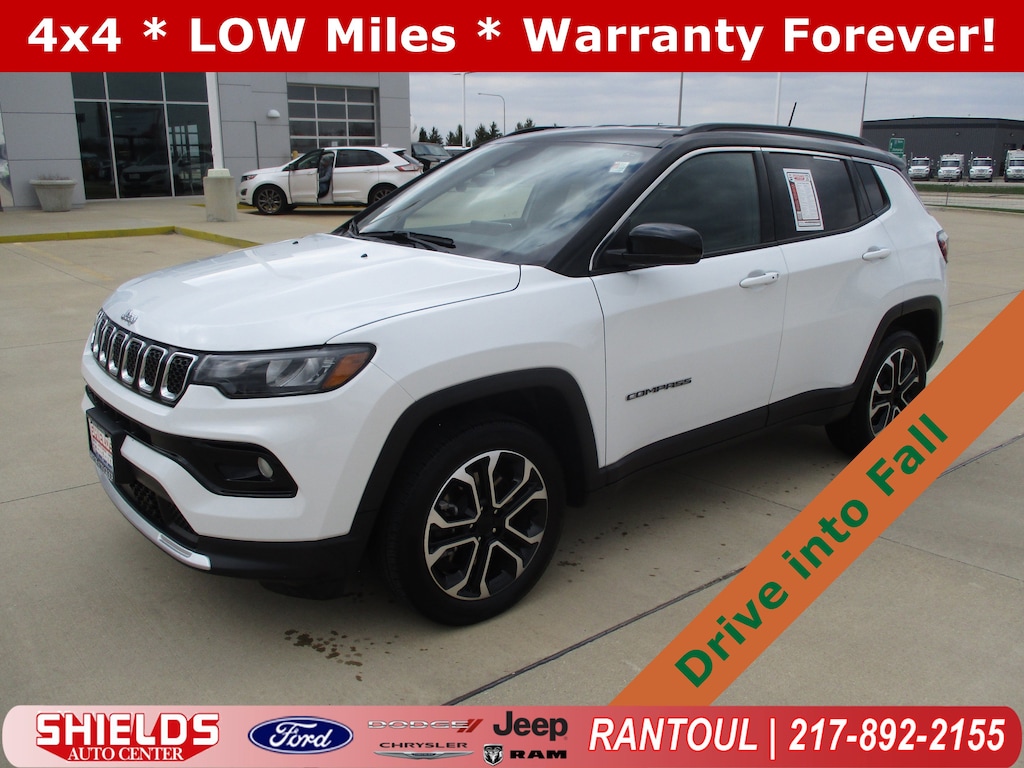 Safe and reliable, this Used 2024 Jeep Compass Limited lets you cart everyone and everything you need in one vehicle. This Jeep Compass features the following options: Power Door Locks w/Autolock Feature, Front Fog Lamps, Deep Tinted Glass, Cruise Control w/Steering Wheel Controls, 10-Way Power Driver Seat -inc: Power Recline, Height Adjustment, Fore/Aft Movement, Cushion Tilt and Power 2-Way Lumbar Support, ABS And Driveline Traction Control, TU-TONE PAINT GROUP, TRANSMISSION: 8-SPEED AUTOMATIC 8F30 (STD), TIRES: 225/55R18 BSW AS (STD), and QUICK ORDER PACKAGE 29G LIMITED -inc: Engine: 2.0L I4 DOHC DI Turbo w/ESS, Transmission: 8-Speed Automatic 8F30. Pilot the whole group in luxurious comfort in this safe and reliable Jeep Compass. A short visit to Shields Auto Center located at 850 Broadmeadow Rd, Rantoul, IL 61866 can get you a hassle free deal on this trustworthy Jeep Compass today!