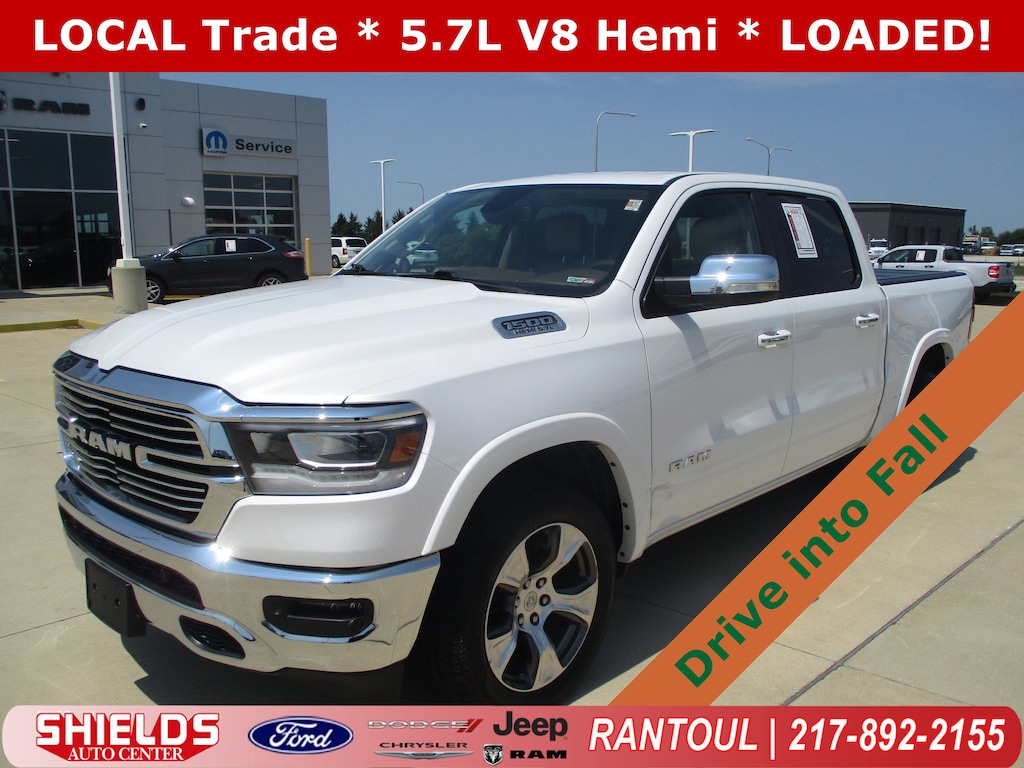 From work to weekends, this White 2020 Ram 1500 Laramie muscles through any terrain. The rugged Regular Unleaded V-8 5.7 L/345 engine produces freight train-like torque so you're always prepared. Own the road in this vehicle. It is well equipped with the following options: Power Rear Windows, Power Door Locks w/Autolock Feature, Front Fog Lamps, Deep Tinted Glass, Cruise Control w/Steering Wheel Controls, ABS And Driveline Traction Control, WHEELS: 20" X 9" PREMIUM PAINT/POLISHED -inc: Tires: 275/55R20 OWL All Season, TRANSMISSION: 8-SPEED AUTOMATIC, TIRES: 275/55R20 OWL ALL SEASON, and QUICK ORDER PACKAGE 25H LARAMIE -inc: Engine: 5.7L V8 HEMI MDS VVT. Test drive this must-see, must-drive, must-own beauty and get a hassle-free deal today at Shields Auto Center, 850 Broadmeadow Rd, Rantoul, IL 61866.